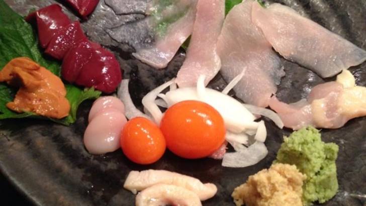 一番多いのは、今回のように鶏肉及びその内臓の刺し身から。